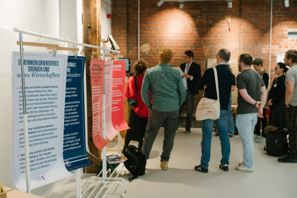 Dort trafen Vertreter*innen der Bundespolitik auf Bürgermeister*innen; Mitarbeiter*innen aus Bundes- und Landesministerien tauschten sich mit Betreiber*innen solcher Dritten Orte aus; die Presse kam mit Verbänden und Wissenschaft mit Stiftungen ins Gespräch. In sechs Praxisreisen zu beispielhaften Orten sozialer Innovation und elf Workshops von (inter)nationalen Expert*innen wurden die Themen des Positionspapiers bearbeitet und um die mannigfaltigen Perspektiven der Teilnehmer*innen ergänzt.